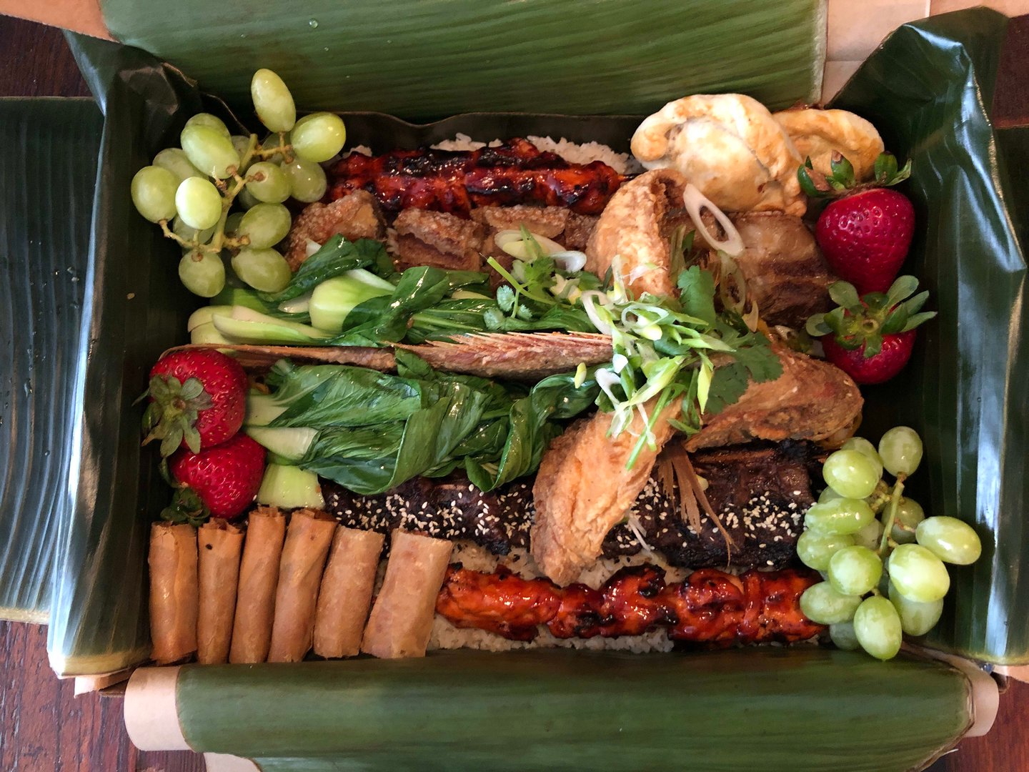 Whole fish snapper, chicken bbq, bagnet crispy pork belly, short ribs, baked empanada, lumpia crispy spring rolls, peanut slaw salad, chi...